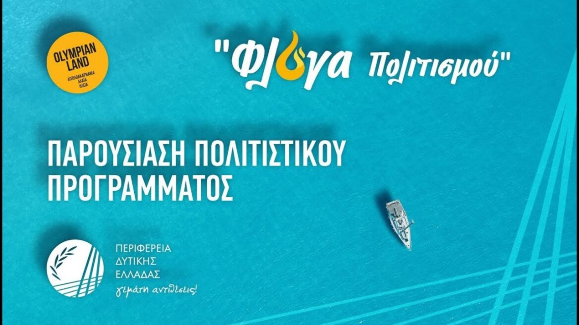 «Φλόγα Πολιτισμού»: ο τίτλος του φετινού φιλόδοξου πολιτιστικού προγράμματος της Περιφέρειας Δυτικής Ελλάδας που περιλαμβάνει πάνω από 250 εκδηλώσεις διαθέτοντας για το σκοπό αυτό ένα ποσόν που ξεπερνά το 1 εκ. ευρώ- σχεδόν διπλάσιο του περσινού- γνωρίζοντας όπως είπε και ο Περιφερειάρχης Νεκτάριος Φαρμάκης στην επίσημη παρουσίαση του προγράμματος στην Αθήνα, ότι «κάθε ευρώ που δαπανάται για τον Πολιτισμό, επιστρέφει πίσω πολλαπλάσια την τοπική κοινωνία».