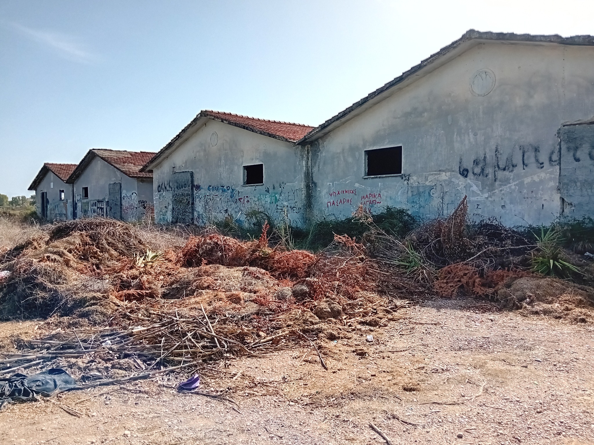 • υπάρχουν πέντε (5) μεγάλες αποθήκες συνολικής επιφάνειας 2.200 τμ. εγκαταλελειμμένες οι 4 με χτισμένες τις πόρτες και μία που απόμειναν μόνο τοίχοι .. μπροστά τους μια χωματερή από κλαδέματα και σκουπίδια (μάλλον έργο της απερχόμενης δημοτικής αρχής..)