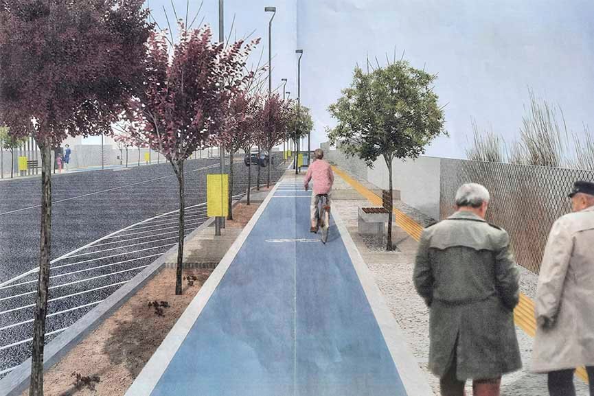 Στο έργο αυτό, μαζί με το πεζοδρόμιο δημιουργείται και ποδηλατόδρομος με αποτέλεσμα να υπάρχουν ερωτήματα κατά πόσον χρησιμεύουν τα αναρίθμητα παγκάκια σε ένα σημείο που δεν έχει και την κατάλληλη σκίαση και όλη την ημέρα λούζεται κάτω από τον ήλιο…