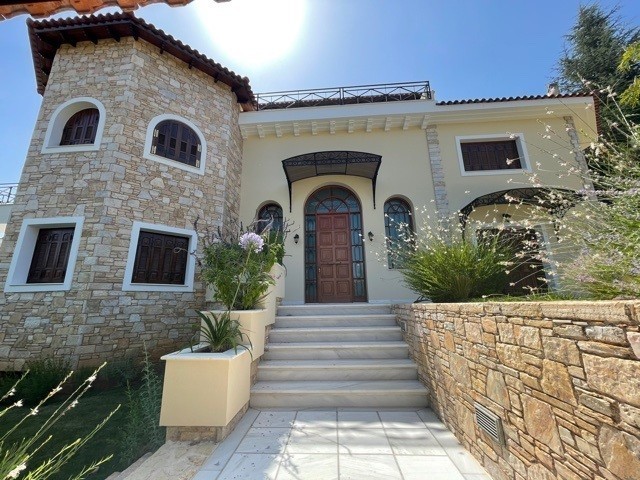 Πρόκειται για διώροφη μονοκατοικία πολυτελούς κατασκευής που αποτελείται από: