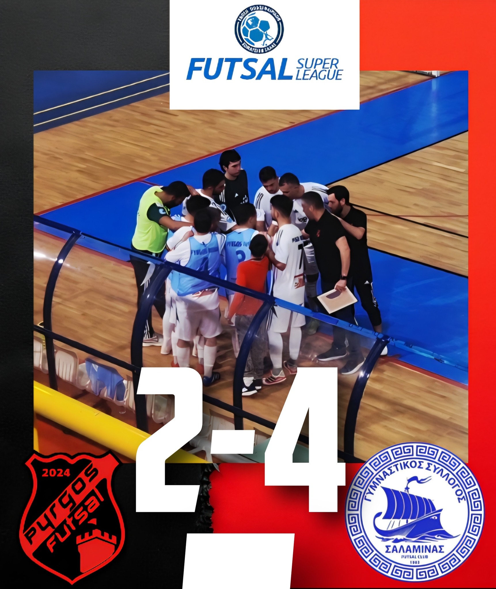 Για την 6η αγωνιστική της Futsal Super League o Pyrgos Futsal 2024 αγωνίστηκε το απόγευμα της Κυριακής 2/11 εντός έδρας όπου ηττήθηκε από τον Γ.Σ. Σαλαμίνας με 2-4 σκορ στο κλειστό Πύργου.