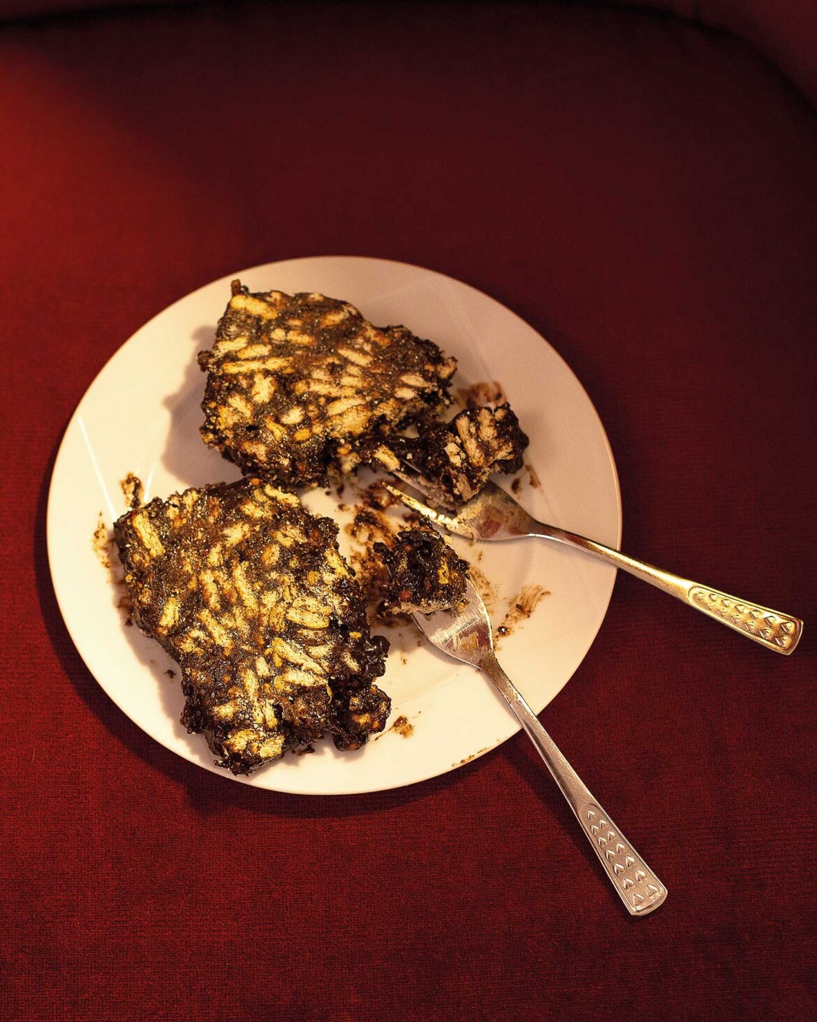 - Σπάμε τα μπισκότα σε χοντρά κομμάτια μέσα σε ένα μεγάλο μπολ και προσθέτουμε το μείγμα του βουτύρου, ανακατεύοντας καλά ώστε να πάει παντού. Καλύπτουμε μια μακρόστενη φόρμα (ή μια άλλη φόρμα της αρεσκείας μας) με λαδόκολλα.