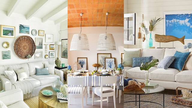 Κατασκευές με κοχύλια, με σκοινί, με θαλασόξυλα, βάψιμο κάποιων επίπλων και αντικειμένων, χειροποίητα κάδρα που θα φτιάξετε χρησιμοποιώντας επίσης θαλασσινά στοιχεία και θέματα, είναι απλές και ταυτόχρονα οικονομικότερες λύσεις για να διακοσμήσετε καλαίσθητα κάθε ιδιωτικό ή επαγγελματικό χώρο σε ναυτικό στυλ.