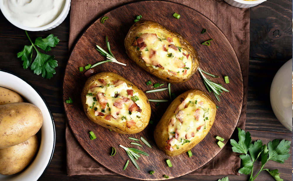 * Επιλέξτε σχετικά μεγάλες πατάτες (170 γρ. – 200 γρ.), ώστε να αναλογεί μία πατάτα ανά άτομο και ζητήστε από τον μανάβη σας να σας δώσει πατάτες με χοντρή φλούδα, κατάλληλες για ψήσιμο στο φούρνο.