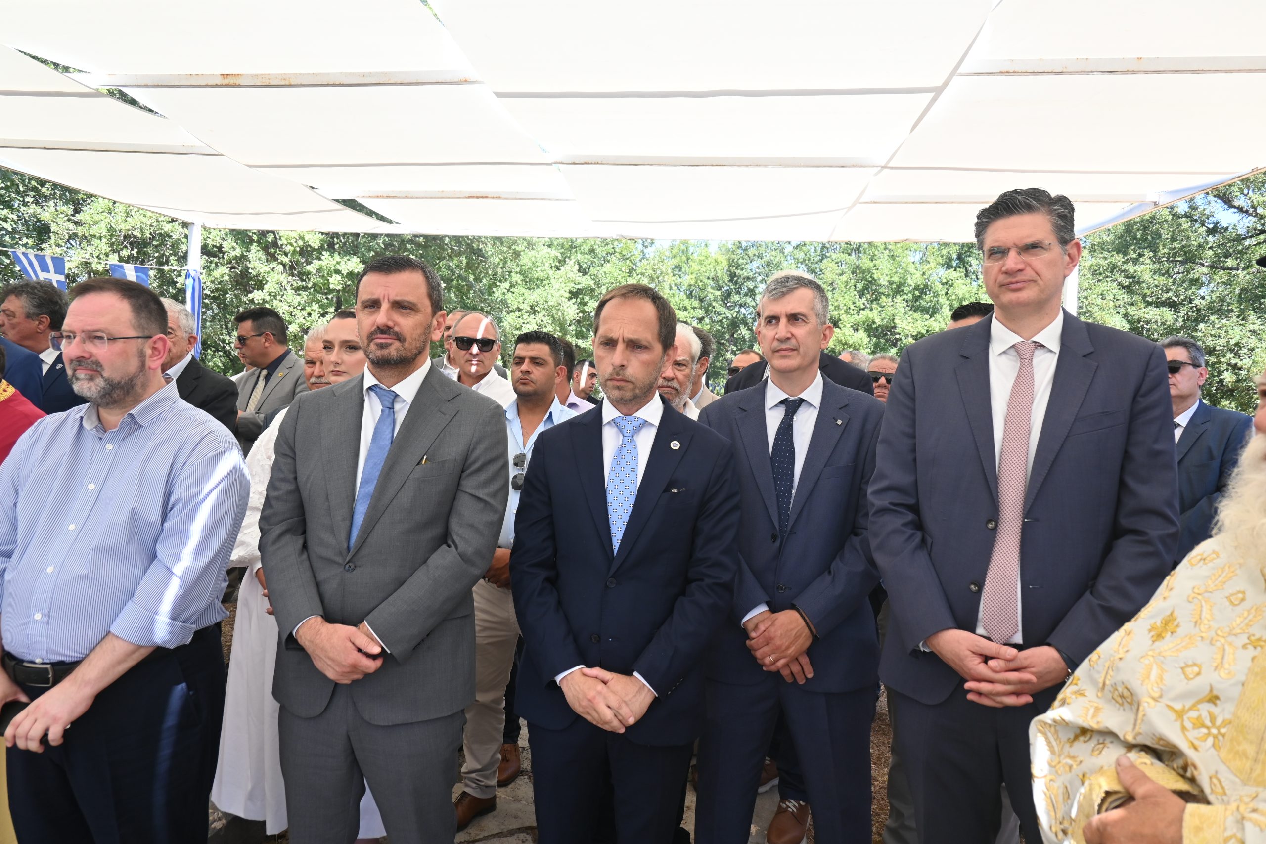 δημοτικοί σύμβουλοι της αντιπολίτευσης κ.κ. Βασίλης Αρβανίτης, Χάρης Σπηλιόπουλος και Νίκος Μαρούντας καθώς και Εκπρόσωποι των Ενόπλων Δυνάμεων και των Σωμάτων Ασφαλείας, στελέχη της Αυτοδιοίκησης, Πρόεδροι Κοινοτήτων, εκπρόσωποι φορέων και συλλόγων, κ.α.