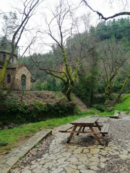 Στην εθνική οδό Πύργου-Τριπόλεως λίγο πιο έξω απο το χωριό Βασιλάκι και μετά τη διασταύρωση για το χωριό Άσπρα Σπίτια υπάρχει ένα μικρό μέρος με μαγική αύρα. Κάτι σαν απο παραμύθι έχουν φτιάξει εκεί…Πέτρινη εκκλησία, ξύλινη γέφυρα και ένα μικρό ποτάμι στη μέση…Είναι κατάλληλο και για πικνίκ καθώς υπάρχει μεγάλο ξύλινο τραπέζι και πέτρινη βρύση με πόσιμο τρεχούμενο νερό κατευθείαν από πηγή. Το ποτάμι που διατρέχει το μέρος έρχεται απο το φαράγγι του Άμπουλα στο βάθος του βουνού και πηγάζει από τον Ερύμανθο. Είναι το κατάλληλο μέρος για μια βόλτα την Κυριακή.