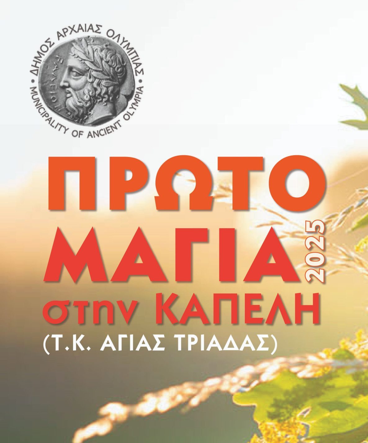 Σας περιμένουμε να γιορτάσουμε μαζί την 1η Μαΐου στην Κάπελη (Τ.Κ. Αγίας Τριάδας) του Δήμου Αρχαίας Ολυμπίας, σε μια όμορφη εκδήλωση για μικρούς και μεγάλους, με είσοδο ελεύθερη και δωρεάν για όλους!