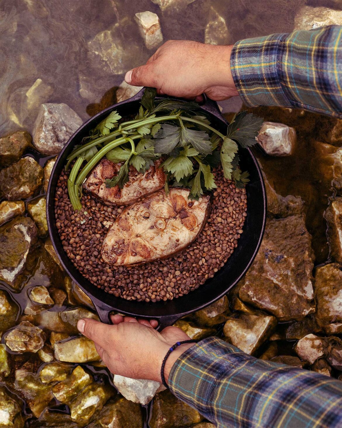Ψάρι με φακές και σέλινο στον φούρνο