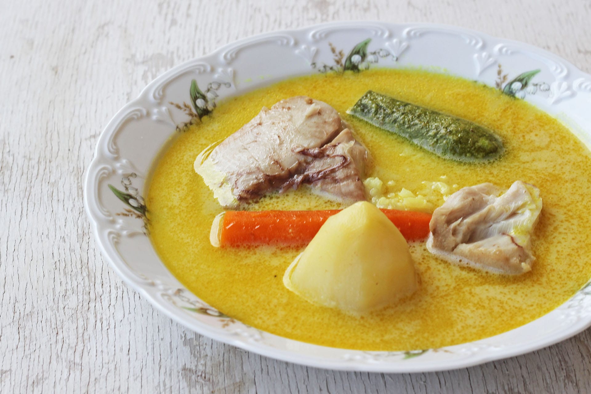 Αφαιρούμε το κρεμμύδι και το σέλινο και τοποθετούμε σε multi τη μισή ποσότητα της πατάτας, ζωμό, χυμό λεμονιού και φτιάχνουμε έναν πουρέ. Στη συνέχεια, στο ζωμό της σούπας (έχουμε ήδη αφαιρέσει το βραστό ψάρι) προσθέτουμε τον πουρέ και αφήνουμε τη σούπα να χυλώσει.