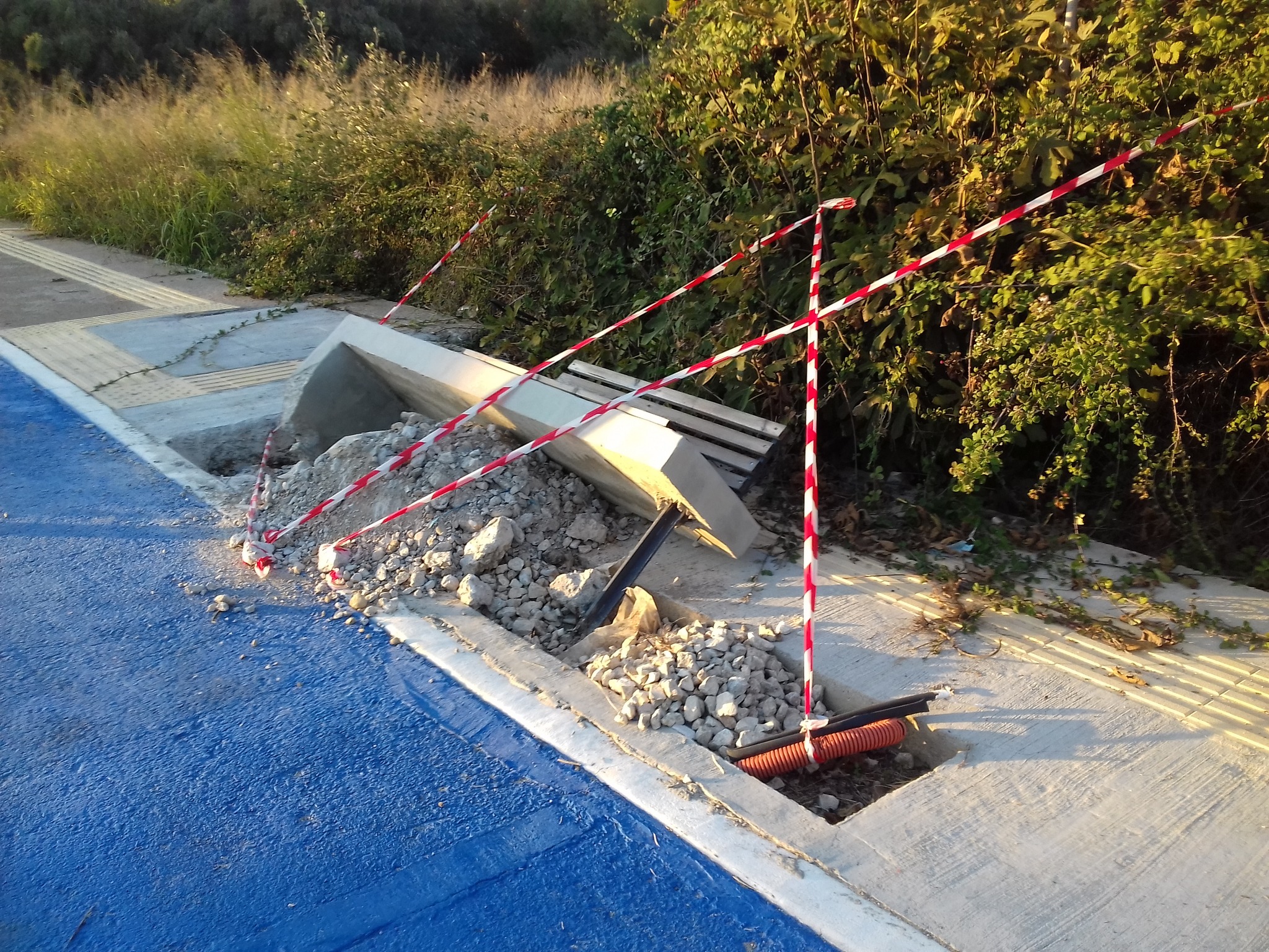 ΠΥΡΓΟΣ – ΑΓ. ΙΩΑΝΝΗΣ: Ξηλώνουν τα τσιμεντένια παγκάκια και βάζουν κάδους στην λωρίδα τυφλών!!!