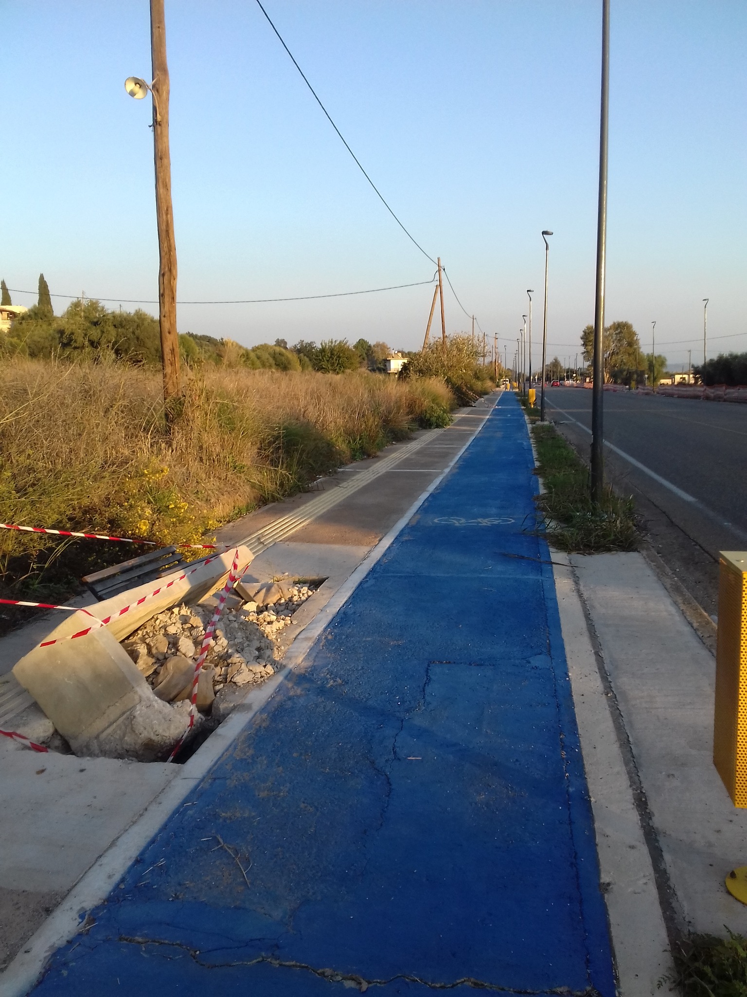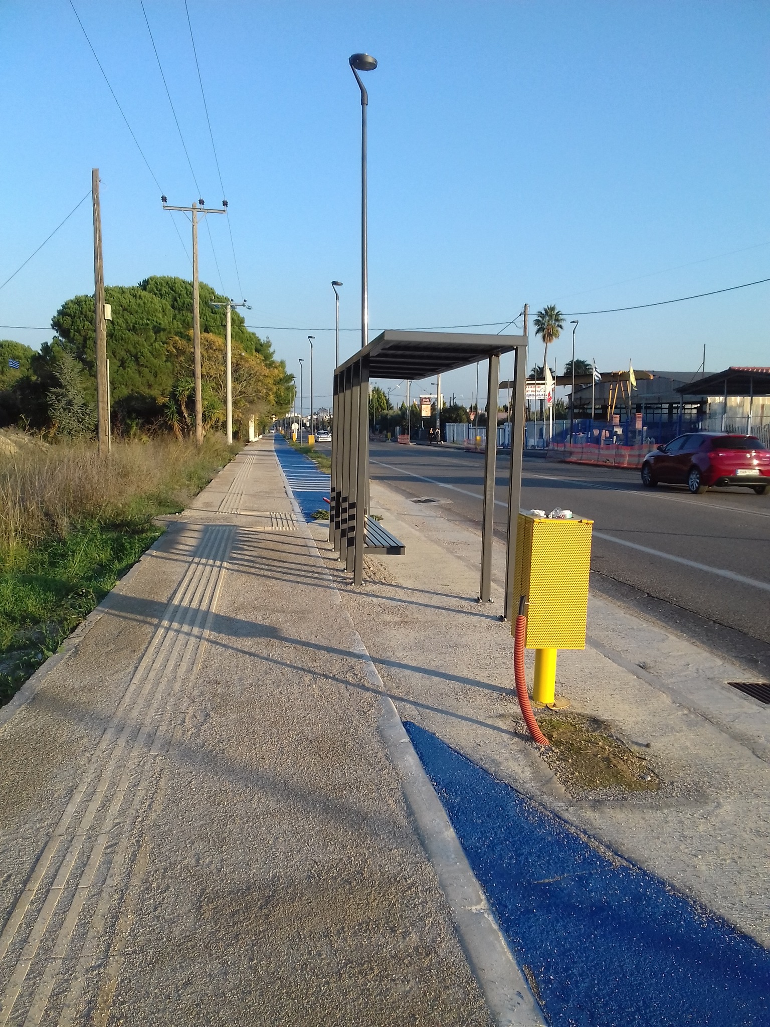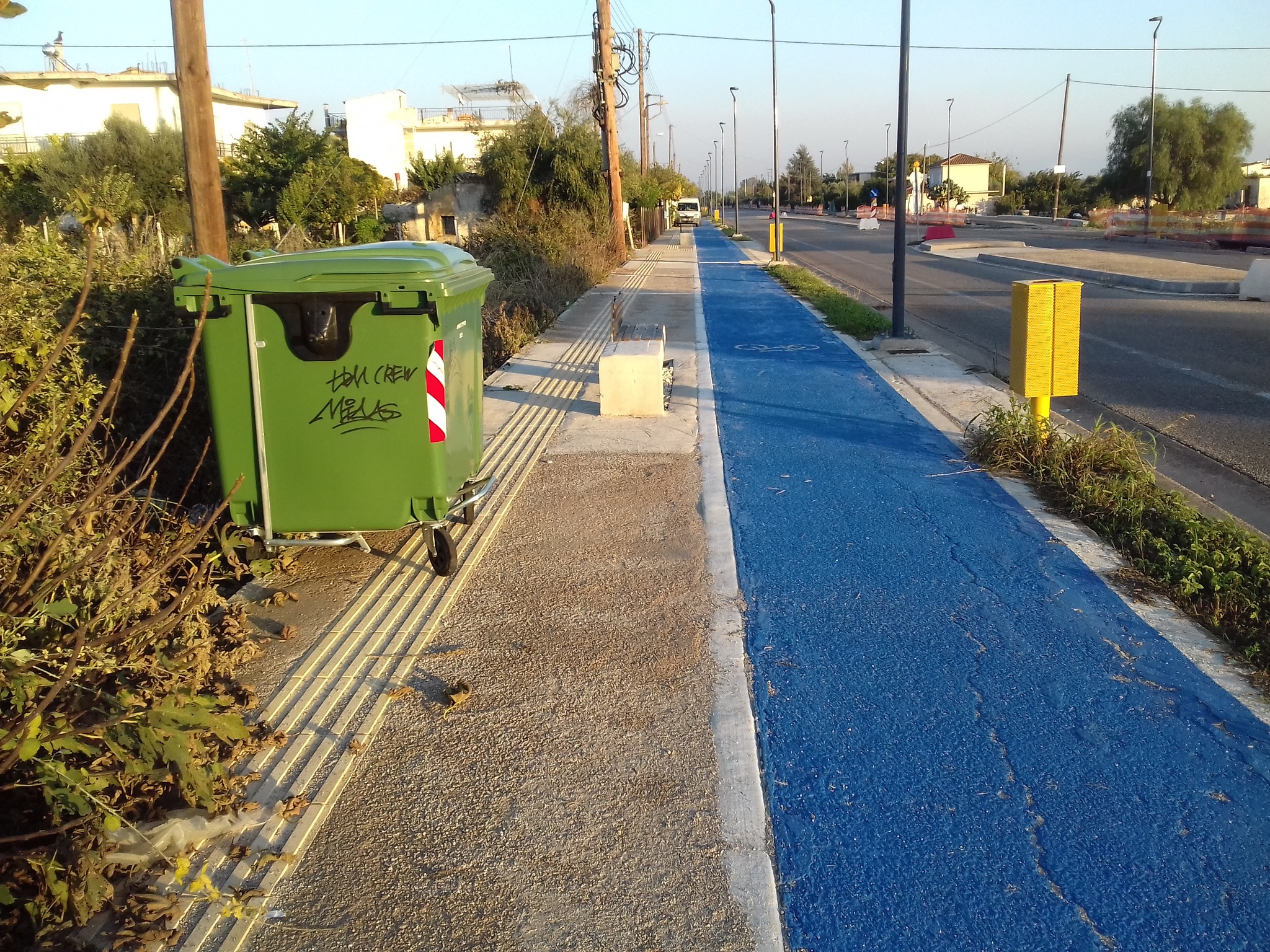 Και διέλευση ποδηλατοδρόμου… μέσα από την στάση, με… παράκαμψη κίτρινου κάδου!!!