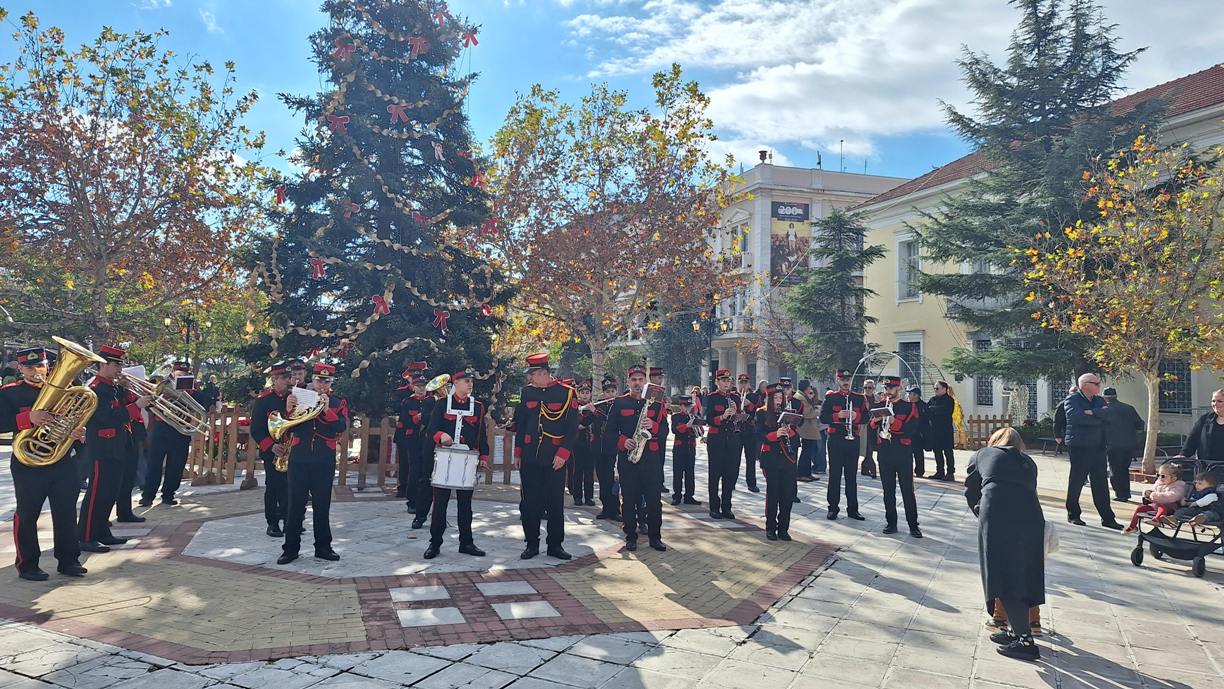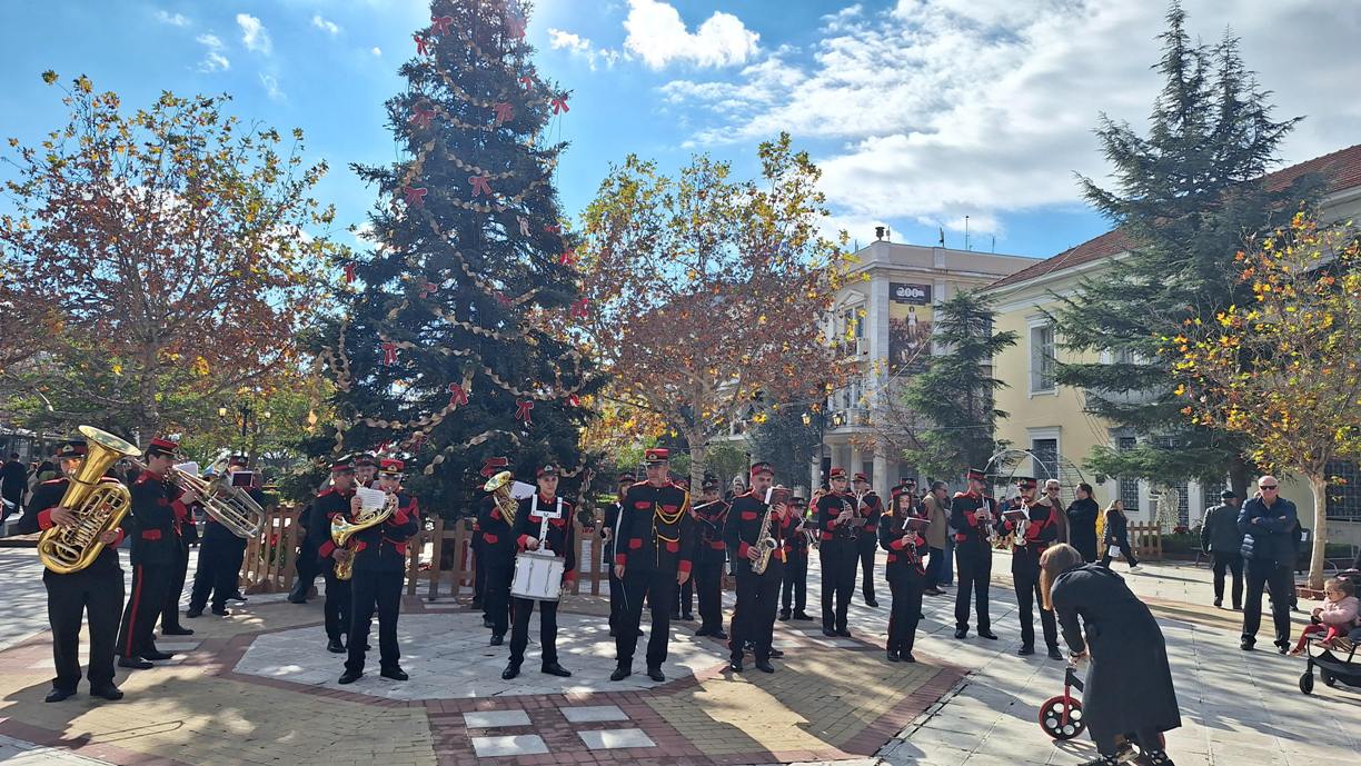 Χριστουγεννιάτικες νότες σκόρπισε η Φιλαρμονική Λεχαινών στους κεντρικούς δρόμους του Πύργου και την κεντρική πλατεία.