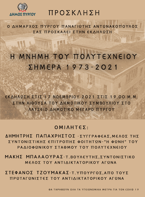 Στην εκδήλωση με τίτλο: «Η ΜΝΗΜΗ ΤΟΥ ΠΟΛΥΤΕΧΝΕΙΟΥ
