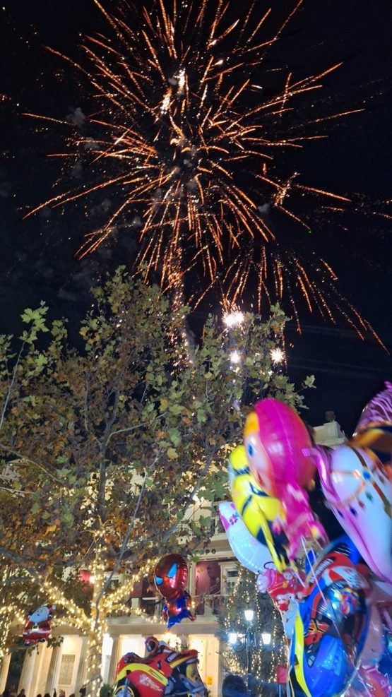 Τα βεγγαλικά στην συνέχεια από την ταράτσα του Δημαρχείου έδοσαν ξεχωριστή ομορφιά στον ουρανό.