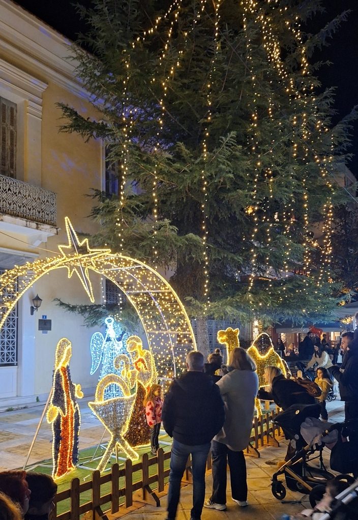 Την φωταγώγησης του Χριστουγεννιάτικου δέντρου έκαναν ο Σεβασμιώτατος Μητροπολίτης κκ Αθανάσιος, ο Δήμαρχος Πύργου Στάθης Καννής και ο Αντιπεριφερειάρχης Ηλείας Νίκος Κοροβέσης.