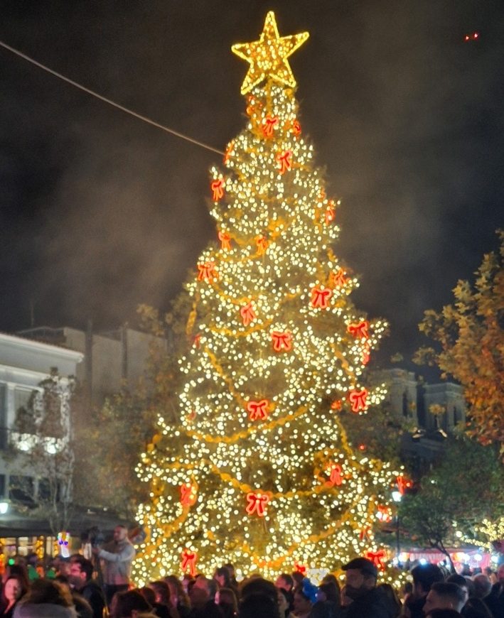 Φωταγωγήθηκε το Χριστουγεννιάτικο Δέντρο στην κεντρική πλατεία του Πύργου.