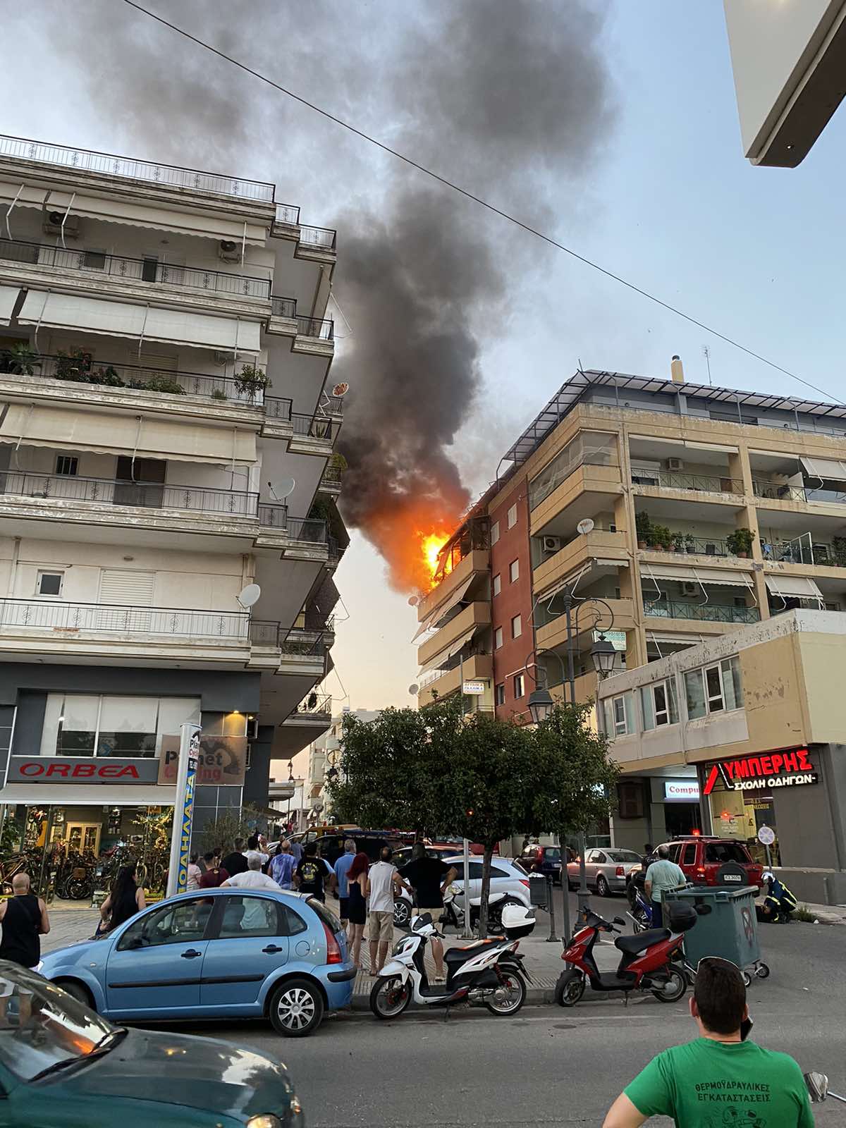 Στο σημείο βρέθηκαν πολλοί κάτοικοι κυρίως των δίπλα πολυκατοικιών ενώ οι μαυροι καπνοί σκέπασαν την περιοχή.
