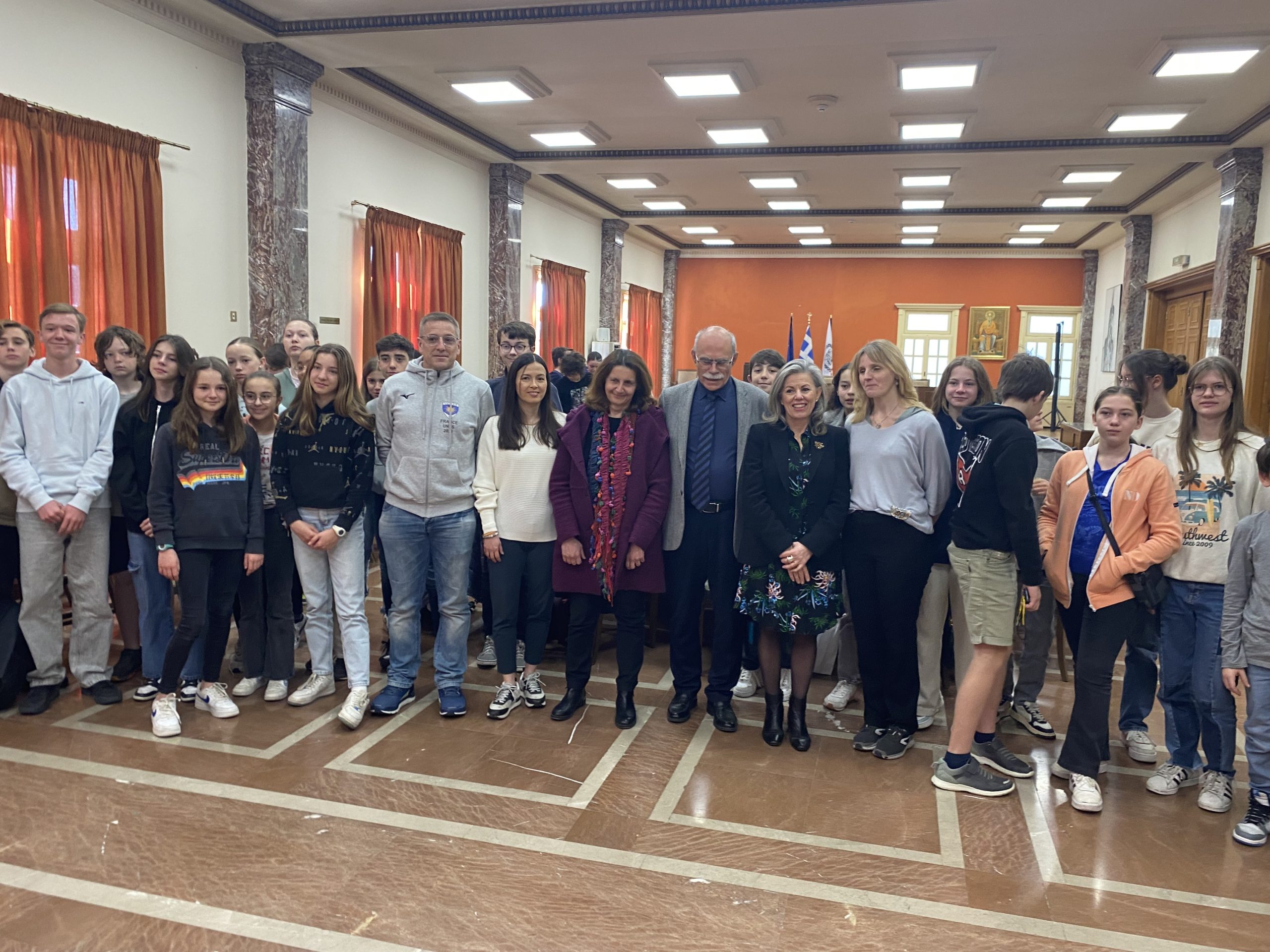 Αιφνιδίασε ευχάριστα ο Δήμαρχος Πύργου κ. Στάθης Καννής τους μαθητές από την Γαλλία που επισκέφθηκαν το πρωί της Τρίτης (13/02/24) το Δημαρχείο, όταν άρχισε να τους μιλά στη μητρική τους γλώσσα.