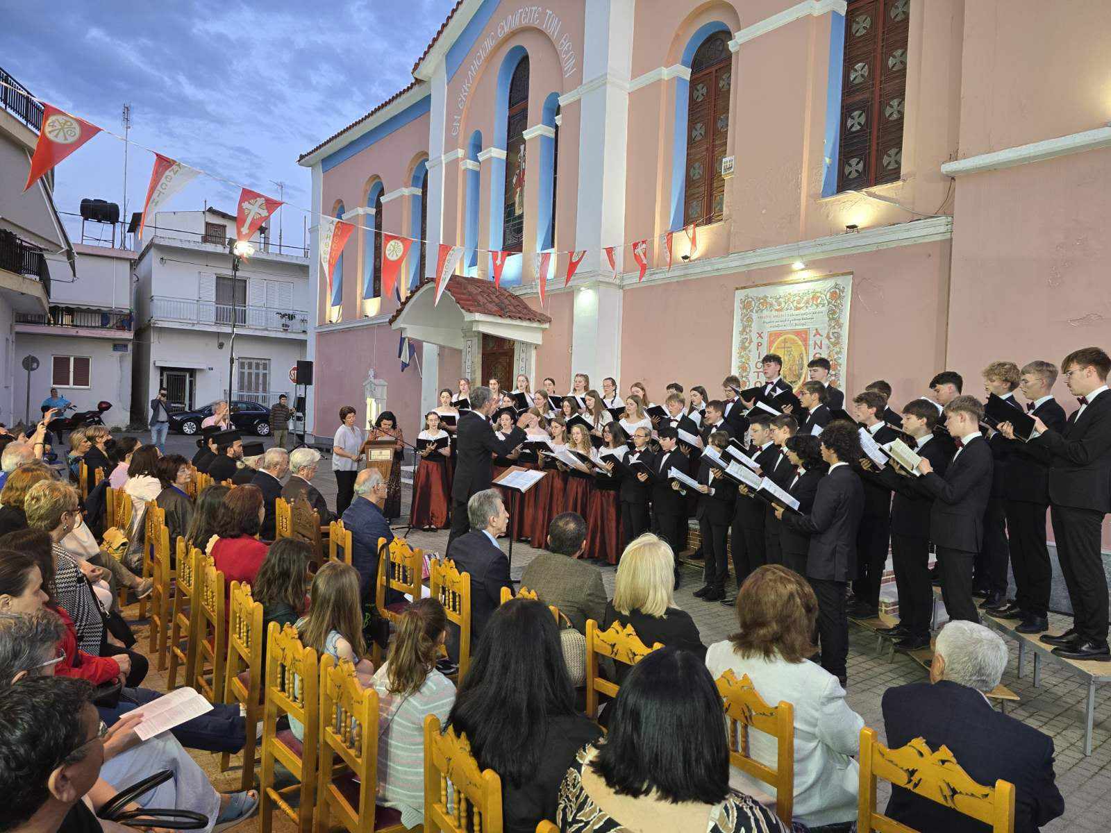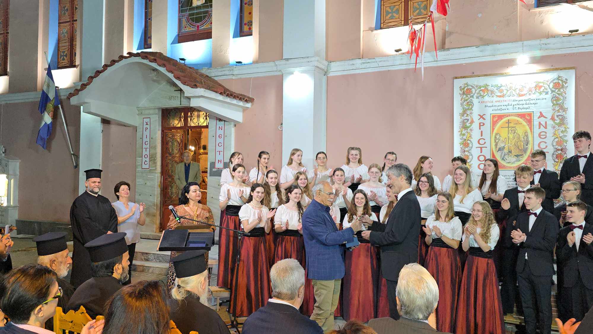 Το τραγούδι της «Δικαιοσύνης Ήλιε νοητέ» που ακούστηκε από τα στόματα των μελών της γερμανικής νεανικής χορωδίας της Christophorus-Kantorei Altensteig, ήταν η κορυφαία στιγμή της ιδιαίτερα ποιοτικής εκδήλωσης που διοργάνωσε ο Δήμος Πύργου σε συνεργασία με την Ι.Μ. Ηλείας στον Άγιο Σπυρίδωνα την Κυριακή το απόγευμα και απόλαυσε πλήθος κατοίκων της ευρύτερης περιοχής της πρωτεύουσας του Νομού.
