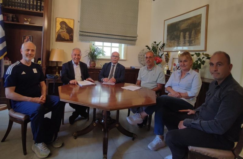 Κυριαζή από την πλευρά του δήμου Πύργου καθώς επίσης και τους Στυλιανό Βασιλείου Πρόεδρο, Χαρά Κουτσούνη Ταμία και Γιάννη Αλτάνη Γ.Γ., εκ μέρους του Συλλόγου Φυσικής Αγωγής.