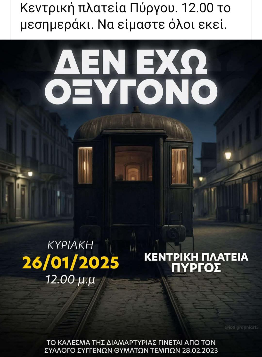 ΠΥΡΓΟΣ: Κάλεσμα διαμαρτυρίας για τα ΤΕΜΠΗ την Κυριακή 26/2 στην Κεντρική Πλατεία