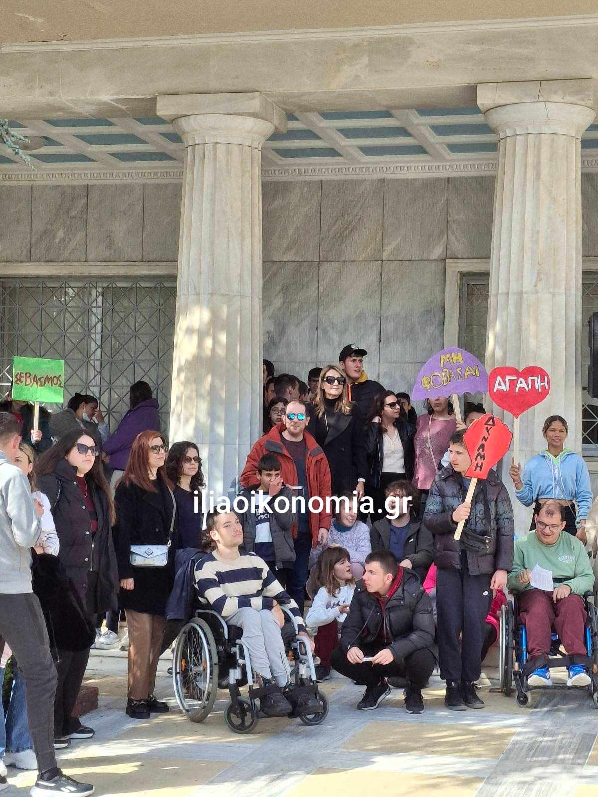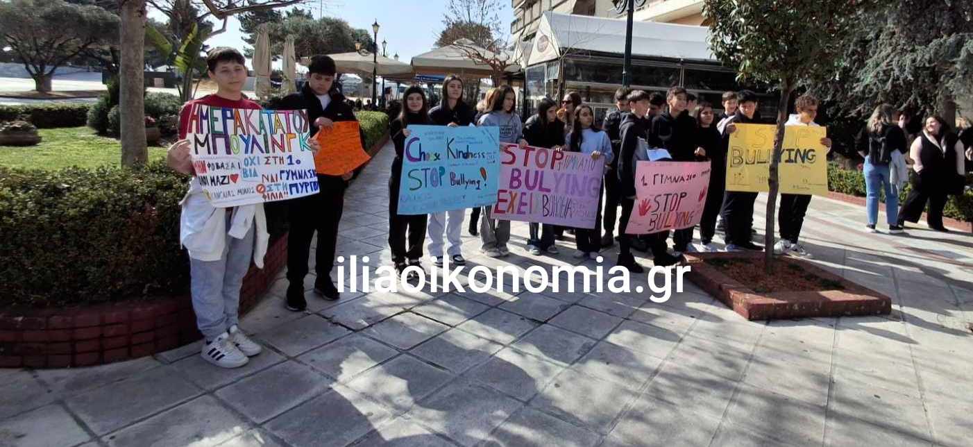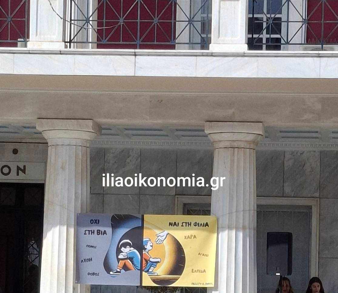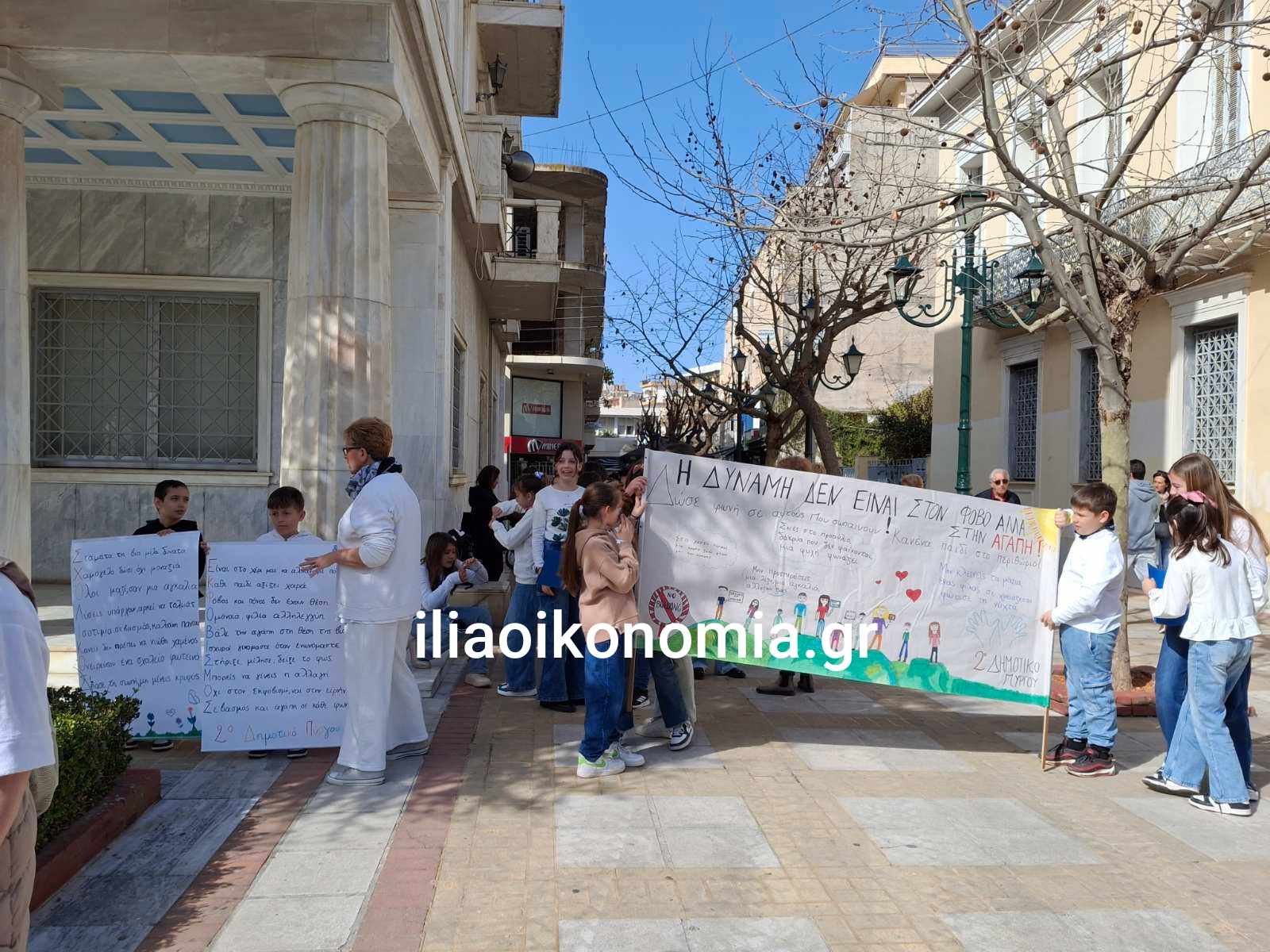 Στον Πύργο έγινε εκδήλωση το πρωί της Πέμπτης στην κεντρική πλατεία όπου συμμετείχαν εκπαιδευτικοί και μαθητές από σχολεία της πόλης.