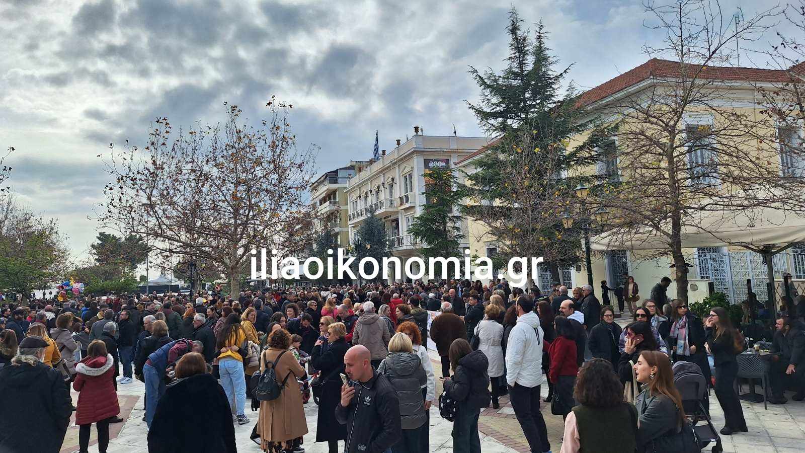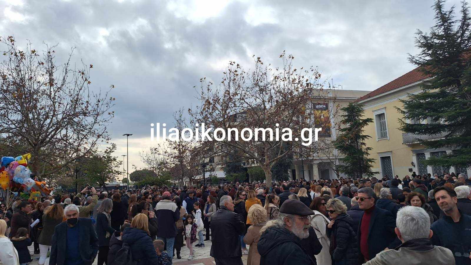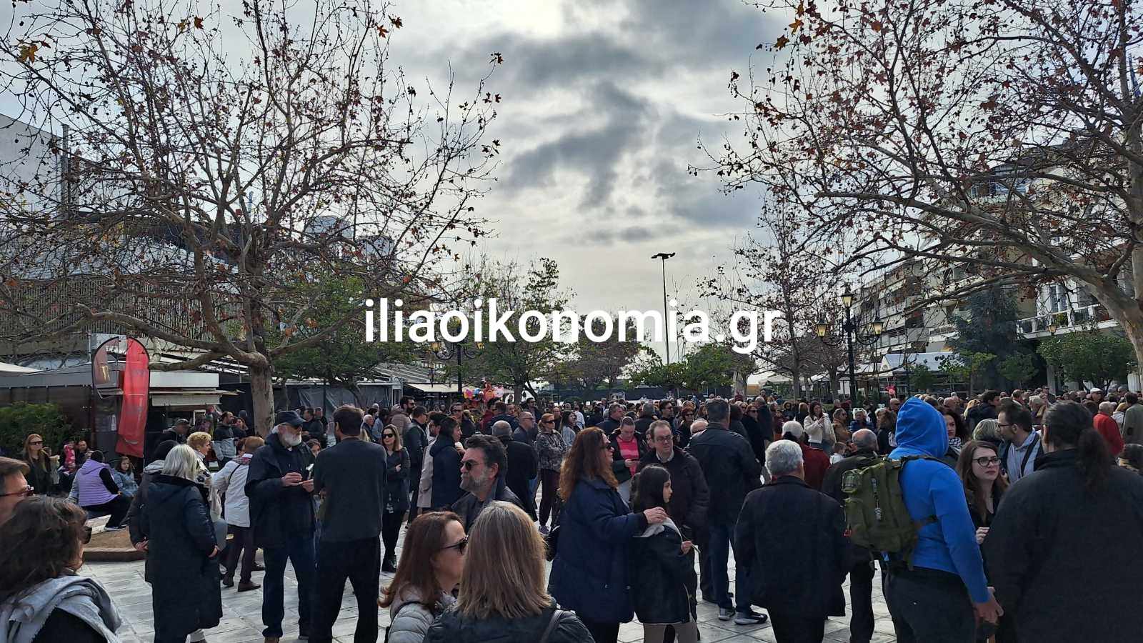 Πλήθος κόσμου έχει συγκεντρωθεί στην Κεντρική Πλατεία του Πύργου όπου με την μαζική συμμετοχή τους στέλνουν ένα ηχηρό μήνυμα προς πάσα κατεύθυνση δηλώνοντας πως η τραγωδία των Τεμπών όπου χάθηκαν 57 νέοι άνθρωποι δεν θα ξεχαστεί.