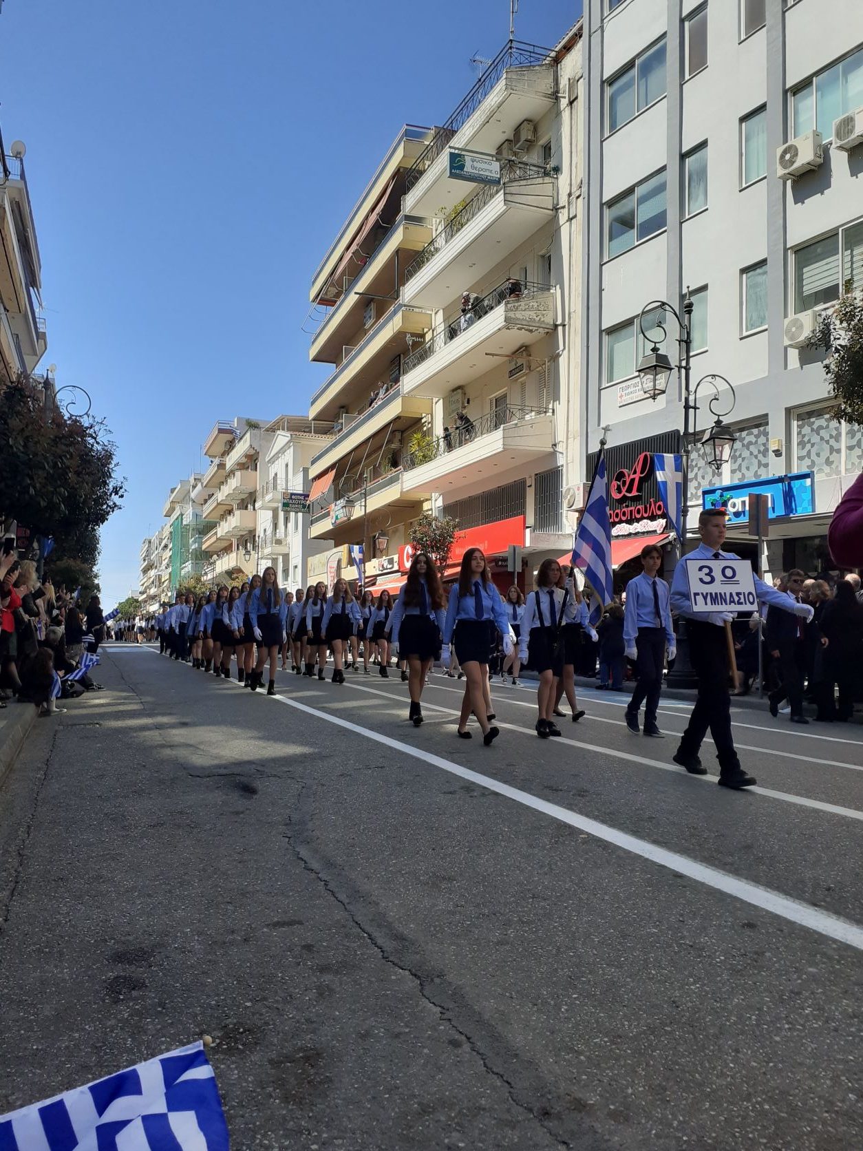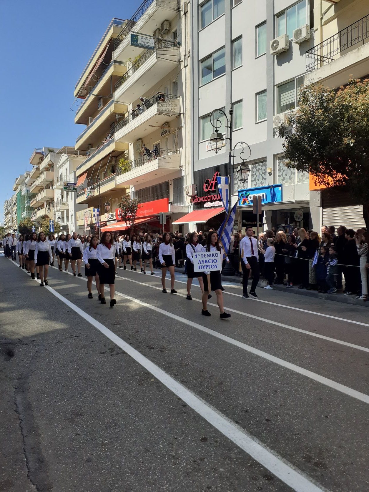 Παρέλασαν στην αρχή μικροί μαθητές των Νηπιαγωγείων και παιδικών σταθμών, στην συνέχεια μαθητές των Δημοτικών σχολείων, μαθητές των Γυμνασίων και των Λυκείων της πόλης.