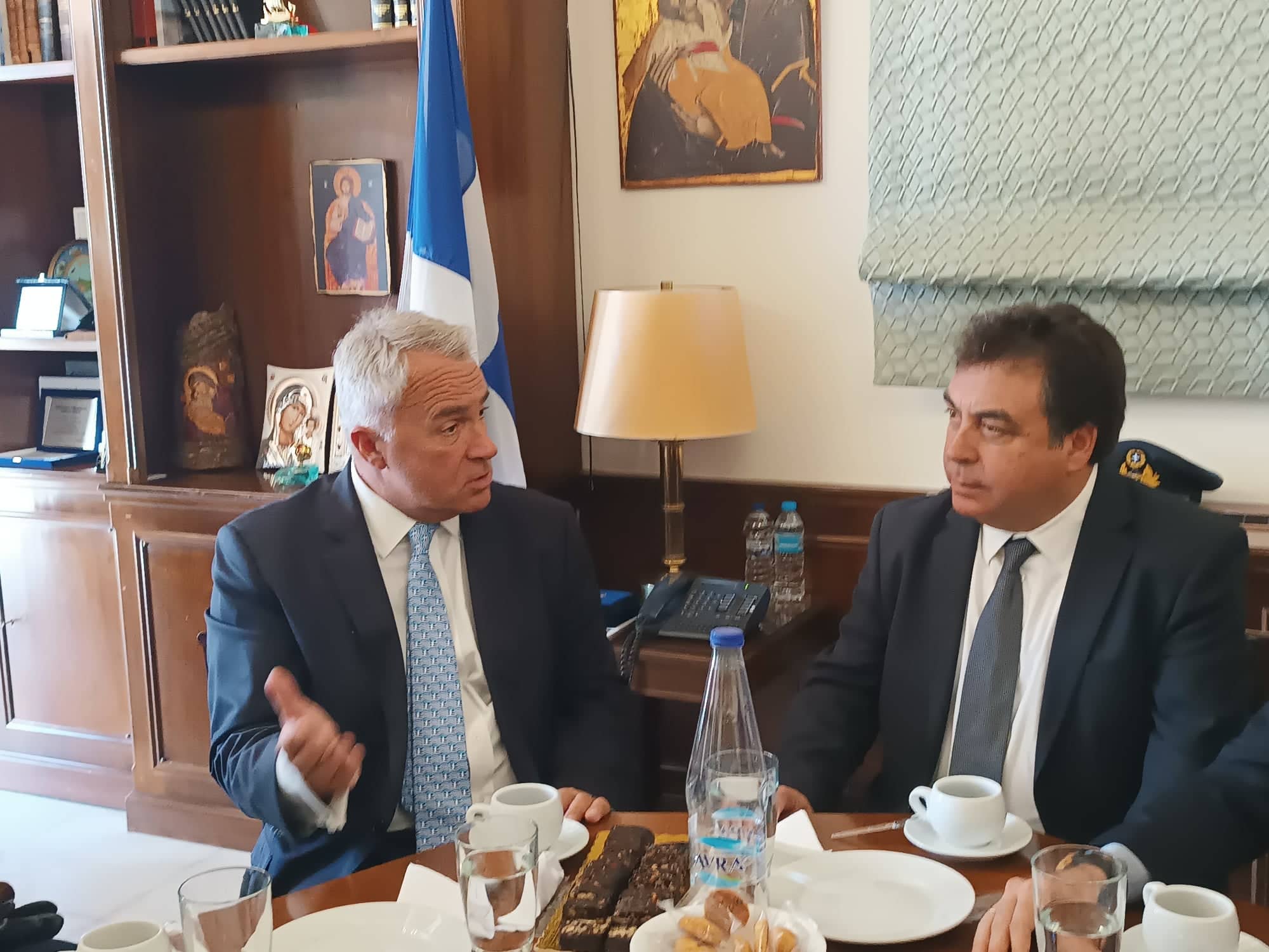 Ακολούθησε μικρή δεξίωση που παρέθεσε ο δήμαρχος Πύργου, Τάκης Αντωνακόπουλος, στο Λάτσειο Δημοτικό Μέγαρο και στην συνέχεια κατευθύνθηκαν προς τον χώρο της παρέλασης.