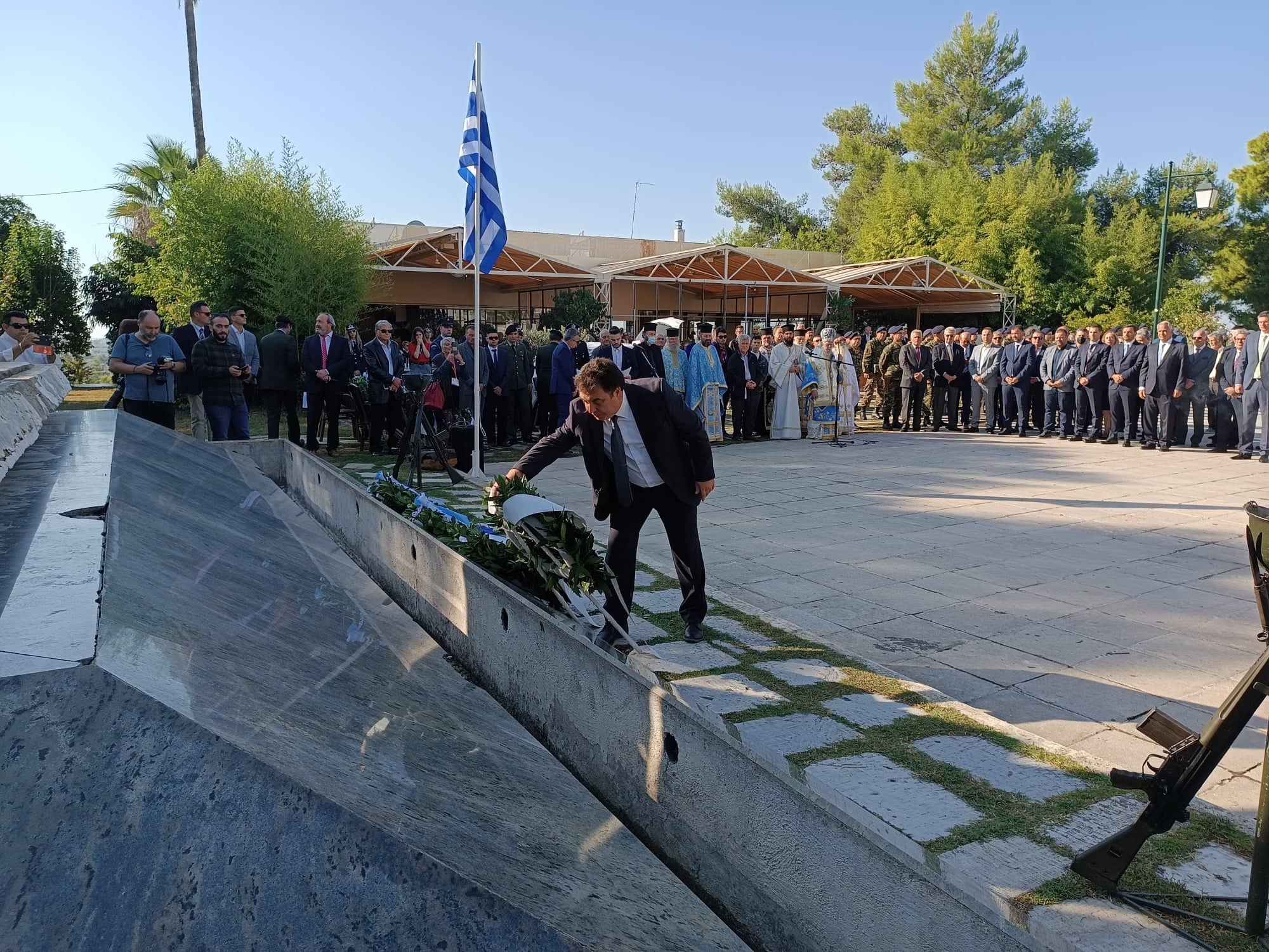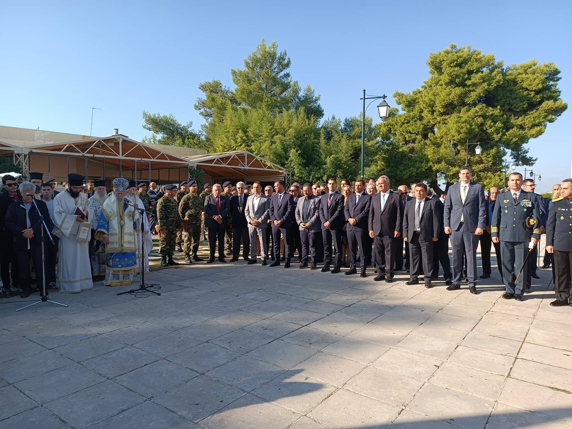 Προηγήθηκε επιμνημόσυνη δέηση και κατάθεση στεφάνων στο μνημείο της Εθνικής Αντίστασης. Την επιμνημόσυνη δέηση από τον Σεβασμιότατο Μητροπολίτη κ.κ. Γερμανό και μεγάλο αριθμό ιερέων παρακολούθησαν η πολιτική και στρατιωτική ηγεσία του Νομού.