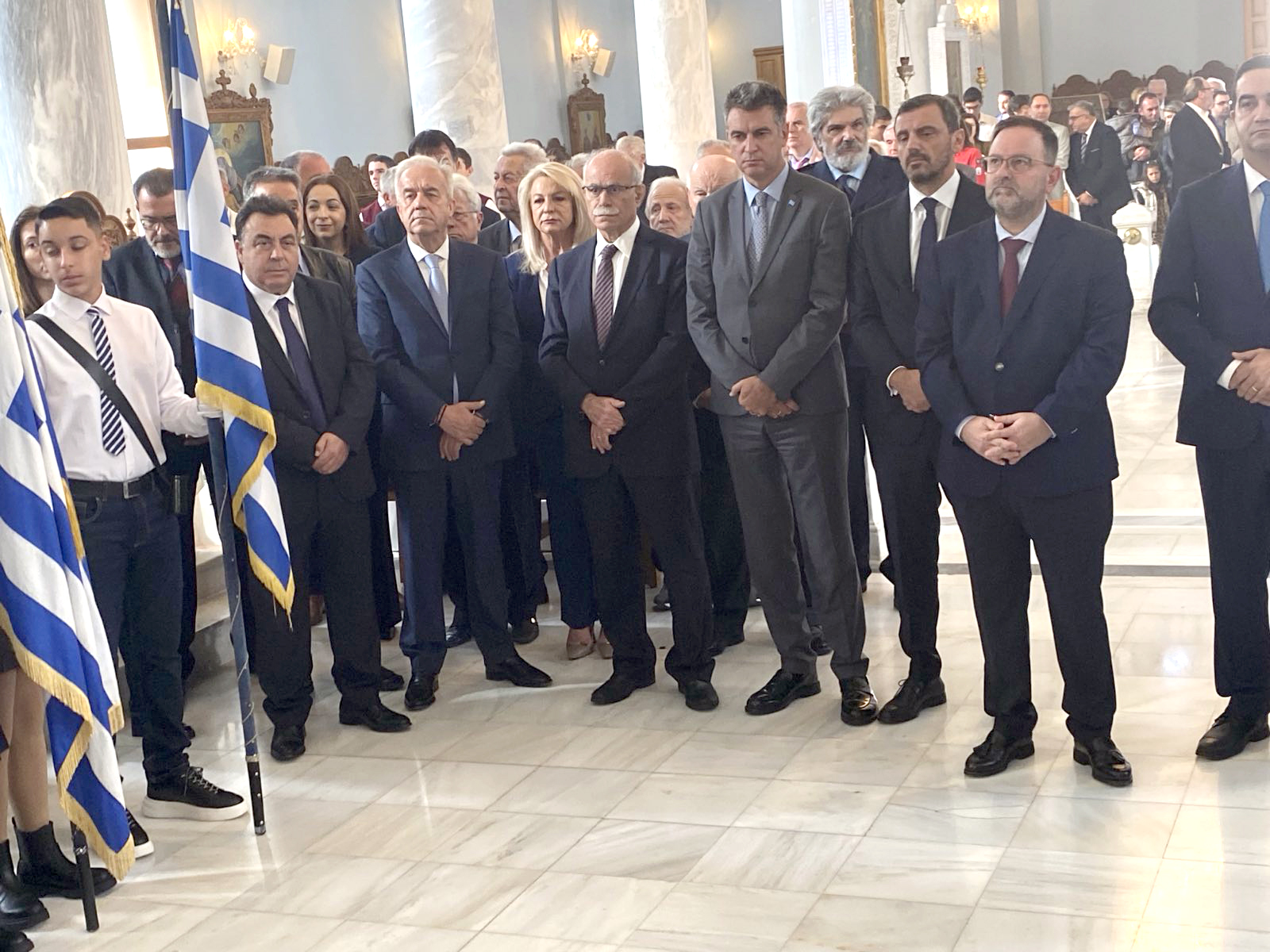 Στις 10:30, στο Μνημείο του Αγνώστου Στρατιώτη στην Κεντρική Πλατεία, τελέστηκε επιμνημόσυνη δέηση και κατάθεση στεφάνων από τους εκπροσώπους της Πολιτείας, της Περιφέρειας, των Ενόπλων Δυνάμεων, των Σωμάτων Ασφαλείας, των πολιτικών κομμάτων, καθώς και από εκπροσώπους συλλόγων, σωματείων και φορέων της πόλης.