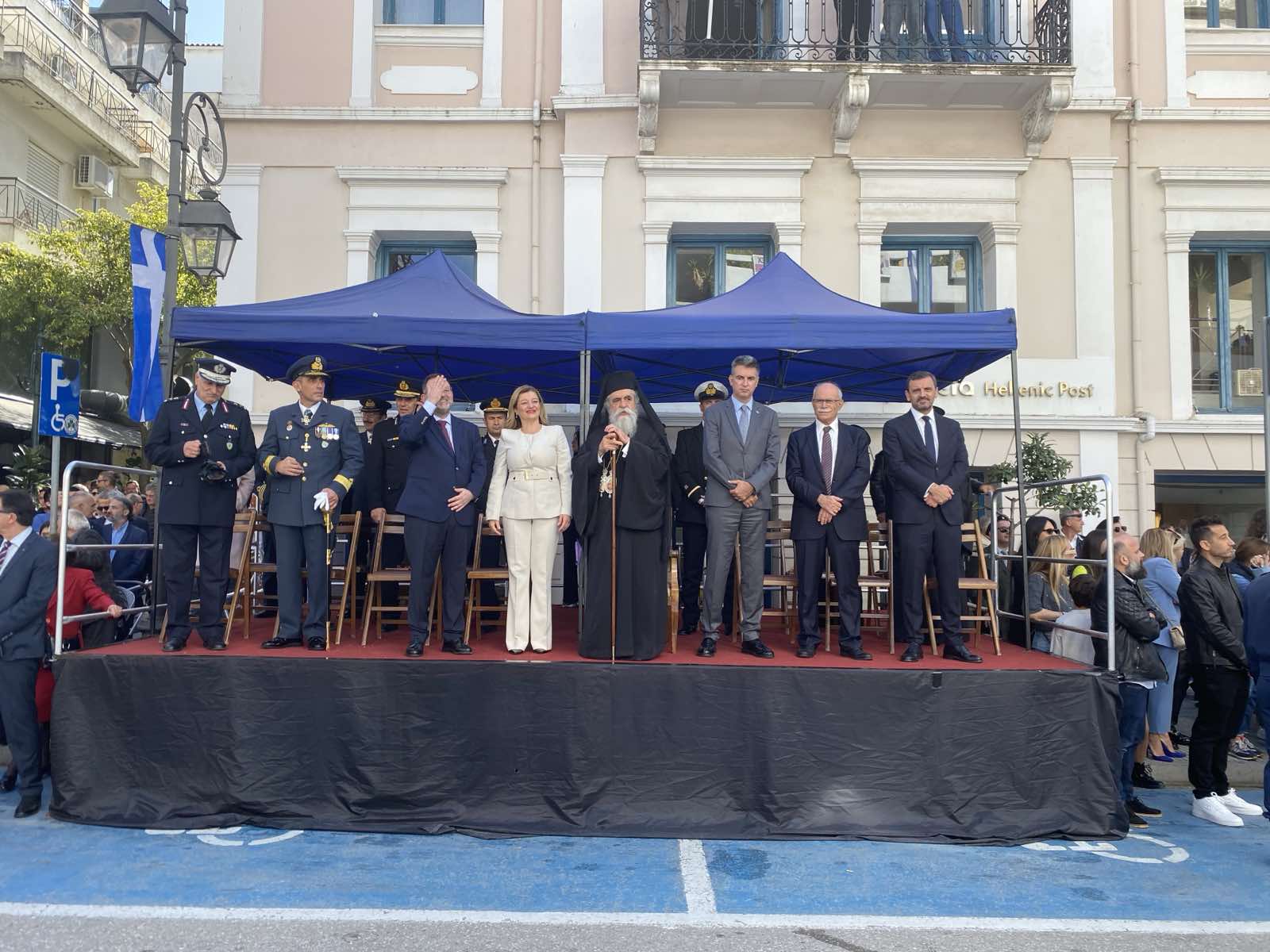 Στις 10:00 τελέστηκε η επίσημη δοξολογία στον Ιερό Ναό Αγίου Νικολάου, χοροστατούντος του Σεβασμιωτάτου Μητροπολίτη Ηλείας και Ωλένης κ.κ. Αθανασίου του Β’.