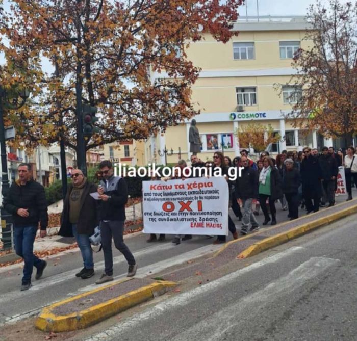 Πορεία στους δρόμους του Πύργου έκαναν το πρωί της Τρίτης εκπαιδευτικοί, δημόσιοι υπάλληλοι και αγρότες ως ένδειξη διαμαρτυρίας ενάντια στις πολιτικές που εφαρμόζει η κυβέρνηση Μητσοτάκη. Σήμερα έχει παραλύσει όλο το δημόσιο από την απεργία που κάνει η ΑΔΕΔΥ σε όλη την χώρα.