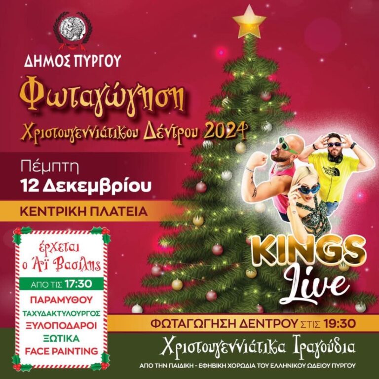 Για σήμερα Πέμπτη 12/12 (και μετά από την αναβολή που είχε δοθεί από την αρχική ημερομηνία του Σαββάτου 7/12), είναι προγραμματισμένη στον Πύργο η φωταγώγηση του Χριστουγεννιάτικου δένδρου, στην κεντρική πλατεία της πόλης στις 7:30 το απόγευμα.