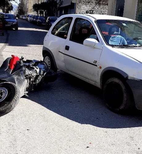 Σύγκρουση αυτοκινήτου μάρκας OPEL με μηχανάκι συνέβη λίγο μετά τις 11.οο πμ στην οδό Ζαίμη και Κοκκίνου στον Πύργο.