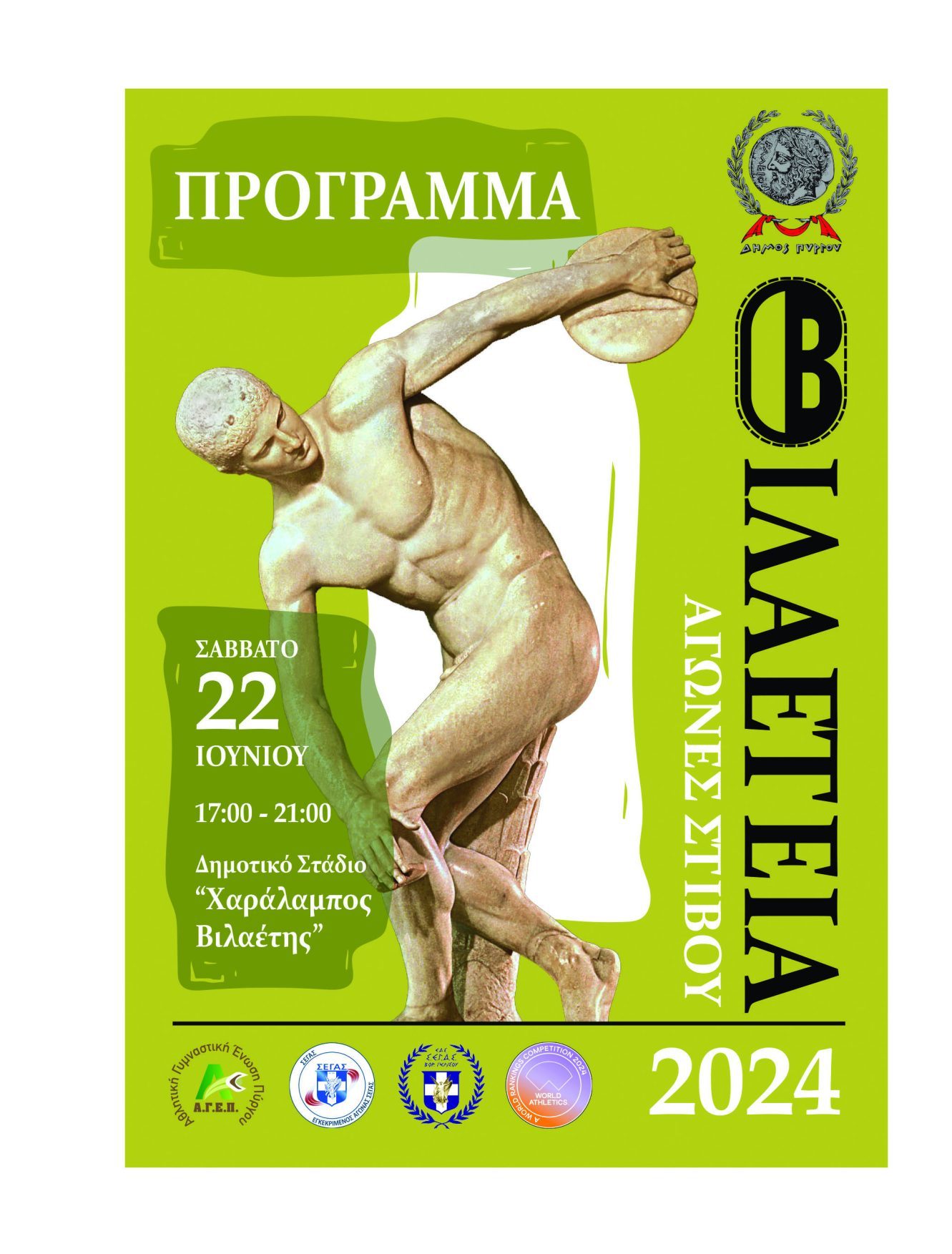 άλλος», κάλεσε τον κόσμο να παρακολουθήσουν τα «Βιλαέτεια» «Είκοσι δύο (22) Ιουνίου ημέρα Σάββατο. Η μεγάλη γιορτή του αθλητισμού για τη νεολαία. Τα «Βιλαέτεια» είναι ένας θεσμός διεξαγωγής αγώνων στίβου που προσελκύει αθλητές από όλη την Ελλάδα. Είμαστε σίγουροι για την επιτυχία τους.