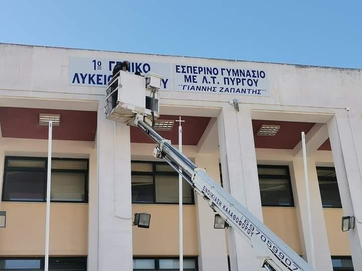Μπήκαν στην θέση τους  οι ταμπέλες για το 1ο Γενικό Λύκειο Πύργου και το Εσπερινό Γυμνάσιο με Λυκειακές Τάξεις Πύργου.