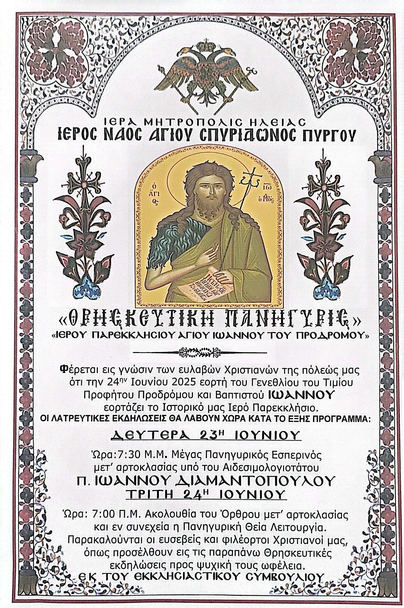 ΠΥΡΓΟΣ: Θρησκευτική Πανήγυρις στο ιστορικό παρεκλήσι του Ιωάννου Προδρόμου