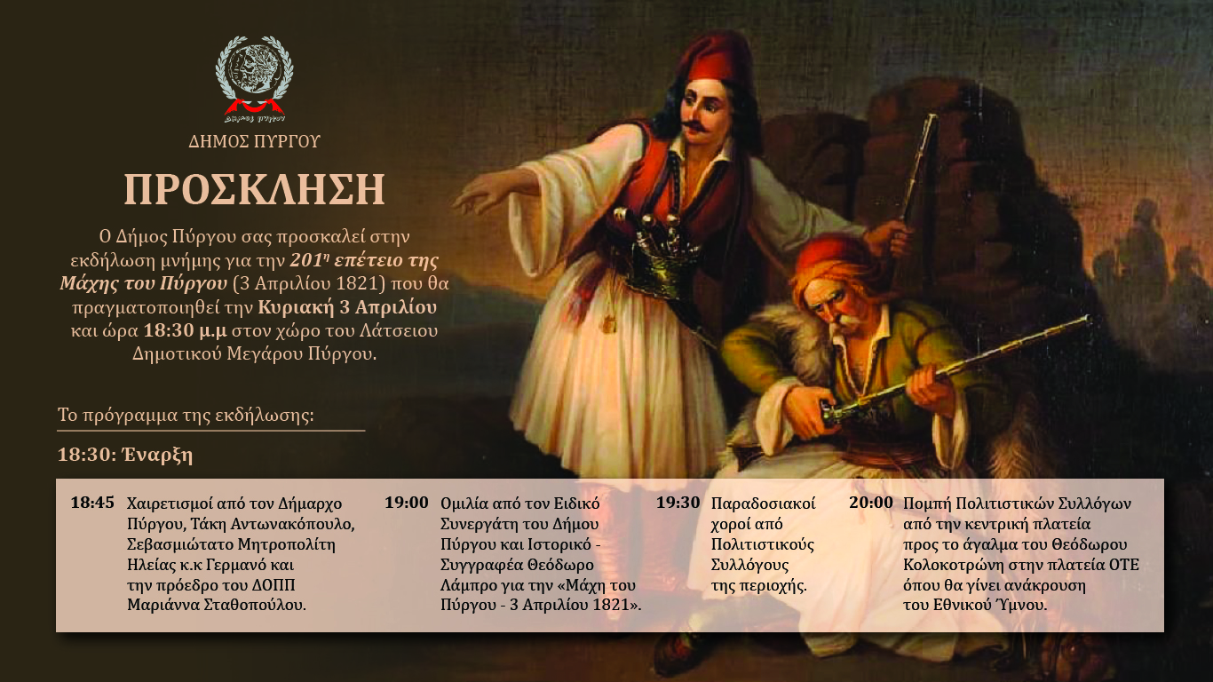 τιμής για την 201 η επέτειο της Μάχης του Πύργου (3 Απριλίου 1821). Η