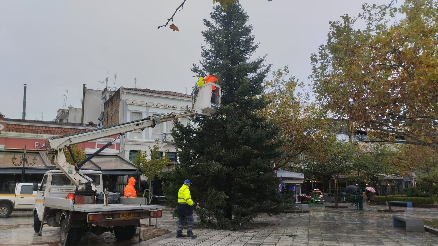 ακολούθως ξεκίνησε ο στολισμός του. Στο σημείο βρέθηκε και η αντιδήμαρχος Πολιτισμού Ρούλα Αλικάκη – Τζανέτου. Η εκδήλωση για επίσημη φωταγώγησή του έχει προγραμματισθεί στις 7.00 το απόγευμα της ερχόμενης Κυριακής.