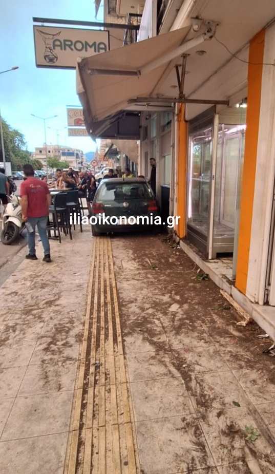 Πύργος: Τρελή πορεία για αμάξι στην Υψηλάντου-Ανέβηκε σε πεζοδρόμιο