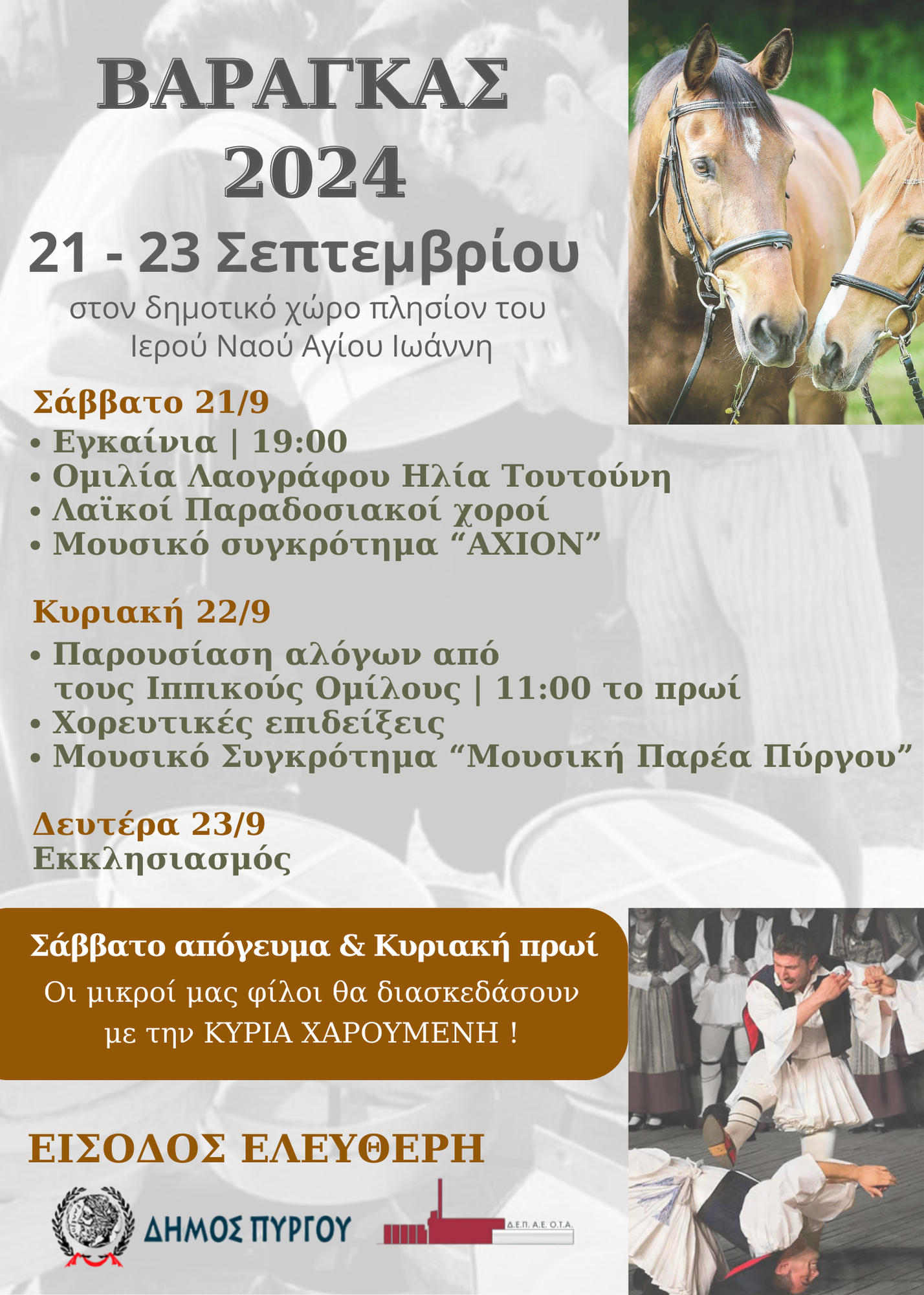 Πύργος: Ξεκινά από Σάββατο μέχρι Δευτέρα το πανηγύρι του Βάραγκα