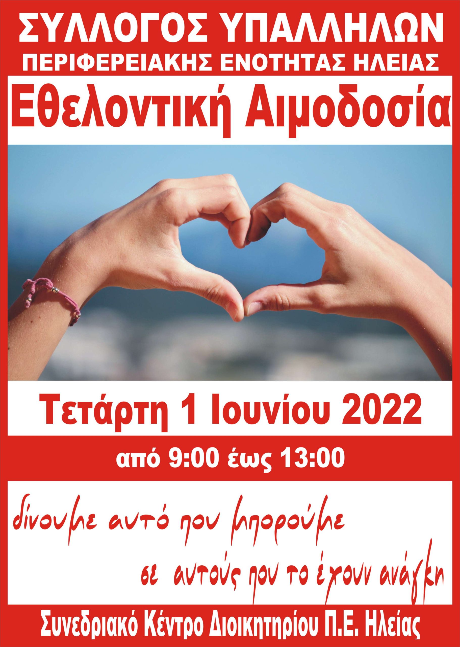 Γενικού Νοσοκομείου Πύργου, με σκοπό την ενίσχυση της Τράπεζας Αίματος του