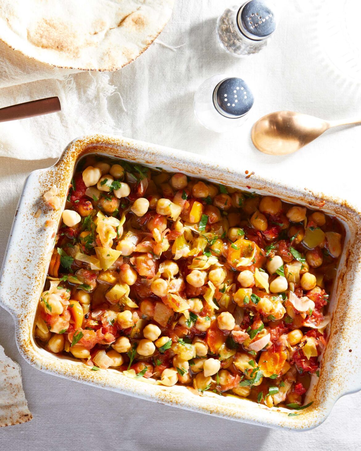 - Ξεφουρνίζουμε, σκορπίζουμε τα μυρωδικά, ανακατεύουμε και σερβίρουμε τη ρεβυθάδα με μήλα.