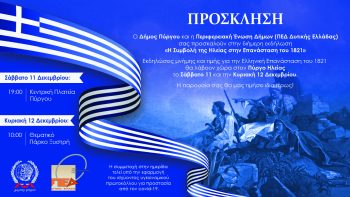 Διήμερες εκδηλώσεις μνήμης και τιμής για την Ελληνική Επανάσταση του 1821 Σάββατο 11 και Κυριακή 12 Δεκεμβρίου