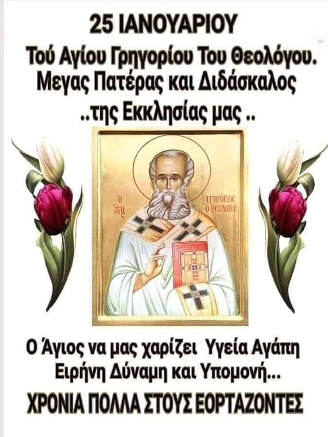 ΣΑΒΒΑΤΟ 25 ΙΑΝΟΥΑΡΙΟΥ ΑΓΙΟΥ ΓΡΗΓΟΡΙΟΥ ΤΟΥ ΘΕΟΛΟΓΟΥ