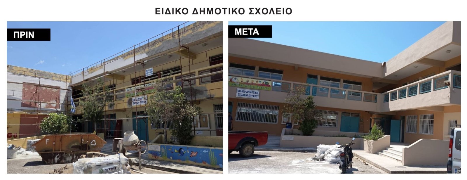 Στο τελικό στάδιο βρίσκονται οι παρεμβάσεις αναβάθμισης των υποδομών στις σχολικές μονάδες του Δήμου Πύργου, που είχαν ενταχθεί στο πρόγραμμα «Μαριέττα Γιαννάκου».