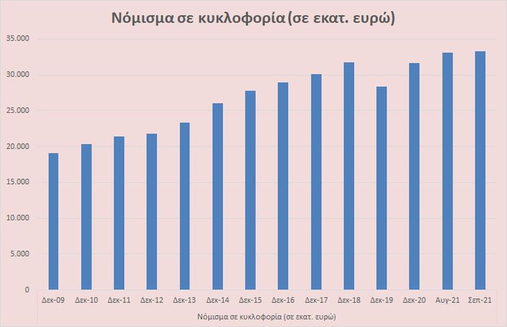Νέα αύξηση της κυκλοφορίας των μετρητών στην αγορά κατέγραψε αρχικά τον Αύγουστο κι έπειτα με νέο ρεκόρ τον Σεπτέμβριο, με τα επίσημα στοιχεία η Τράπεζα της Ελλάδος, εντείνοντας τον …προβληματισμό για το χρήμα που μένει εκτός τραπεζικού συστήματος και «αποταμιεύεται» στα… στρώματα και στις θυρίδες.