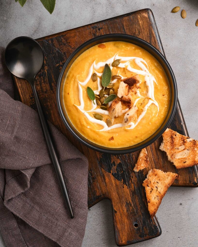 - Πολτοποιούμε το μείγμα μέχρι να γίνει κρέμα, το μεταφέρουμε πάλι στην κατσαρόλα και τη βάζουμε σε μέτρια φωτιά.
