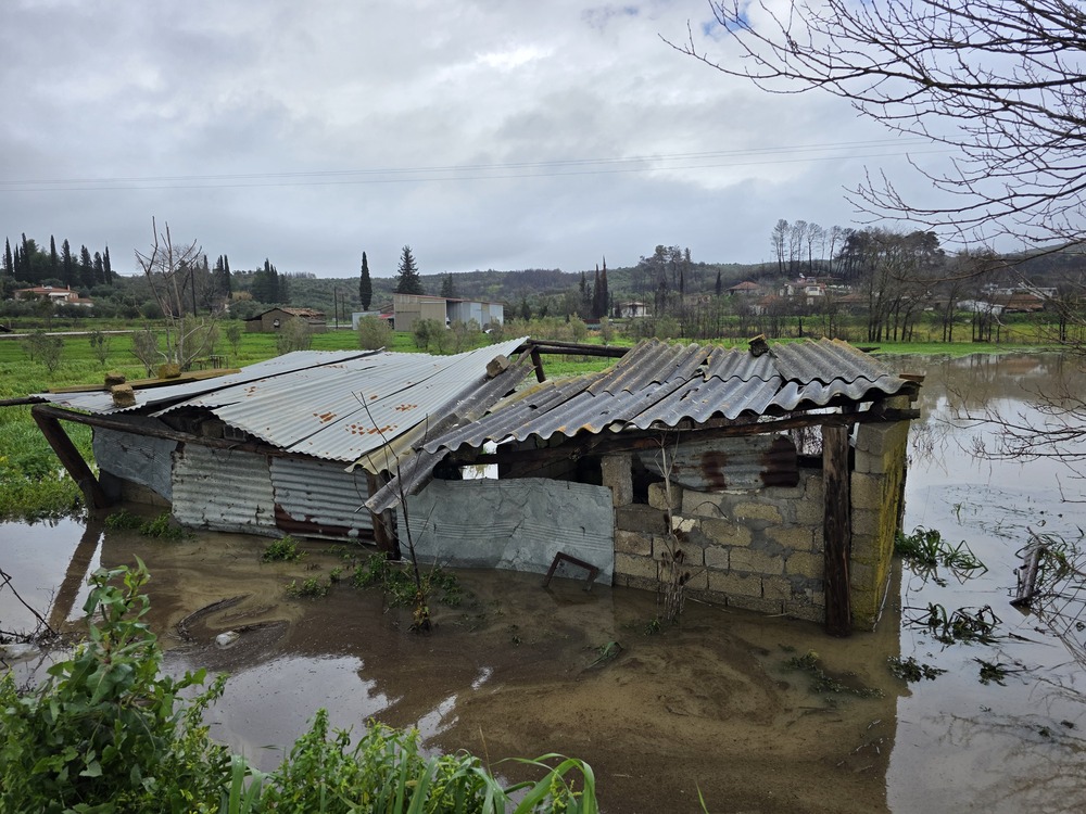 γεωργικές εκτάσεις, εκτεταμένες φθορές στο οδικό δίκτυο με ξήλωμα ασφάλτου, διακοπές